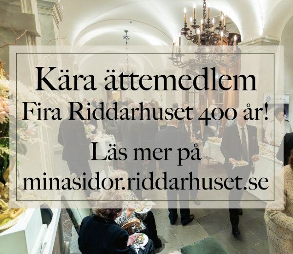 Ättemedlemmarnas inbjudningar till jubileumsårets medlemsresa- och träffar finns på minasidor.riddarhuset.se. Begränsat antal platser!