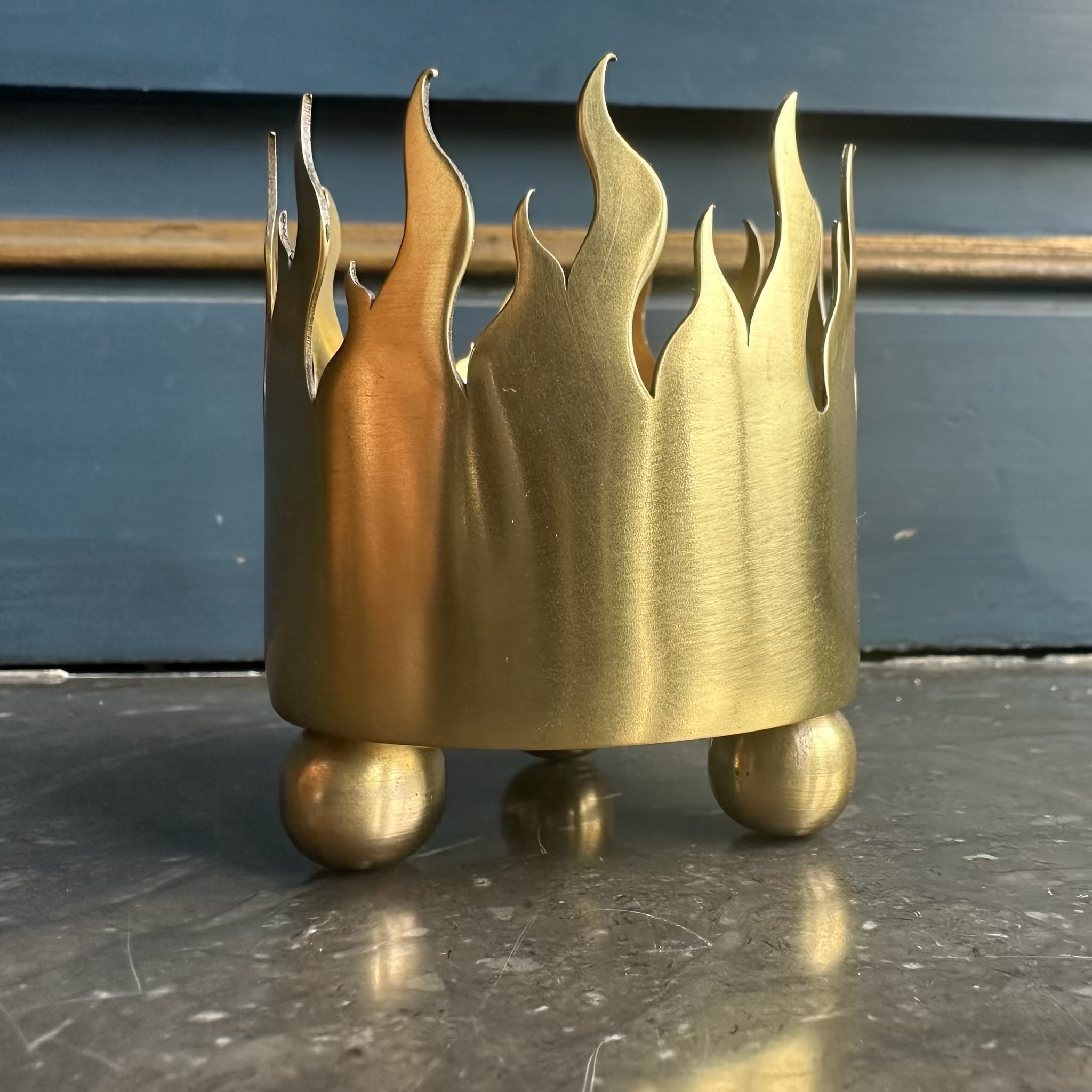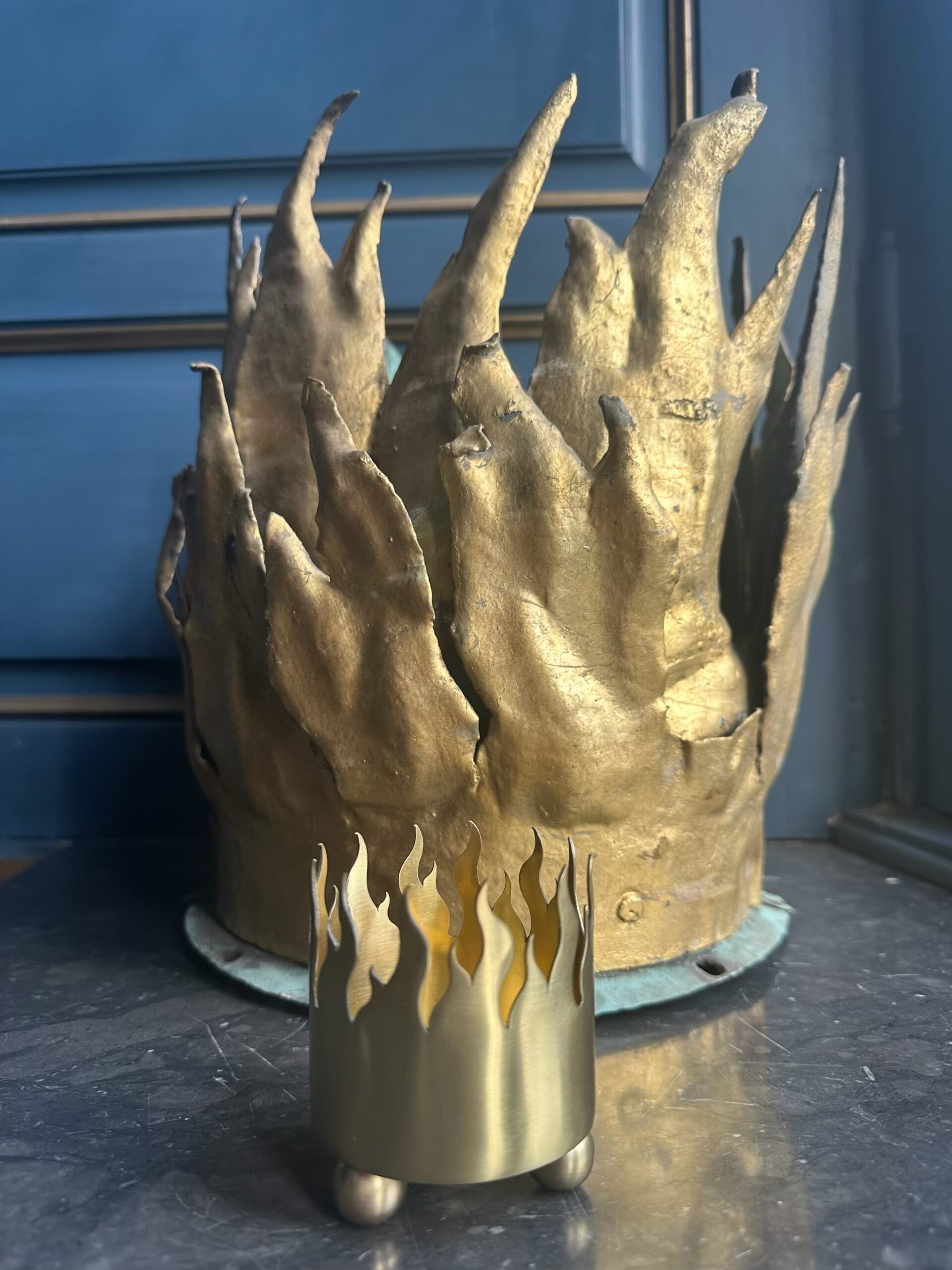 Ljuslyktan Eldsflamman är inspirerad av de förgyllda dekorelement från 1600-talet i form av eldsflammor som pryder skorstenarna på Riddarhusets tak.