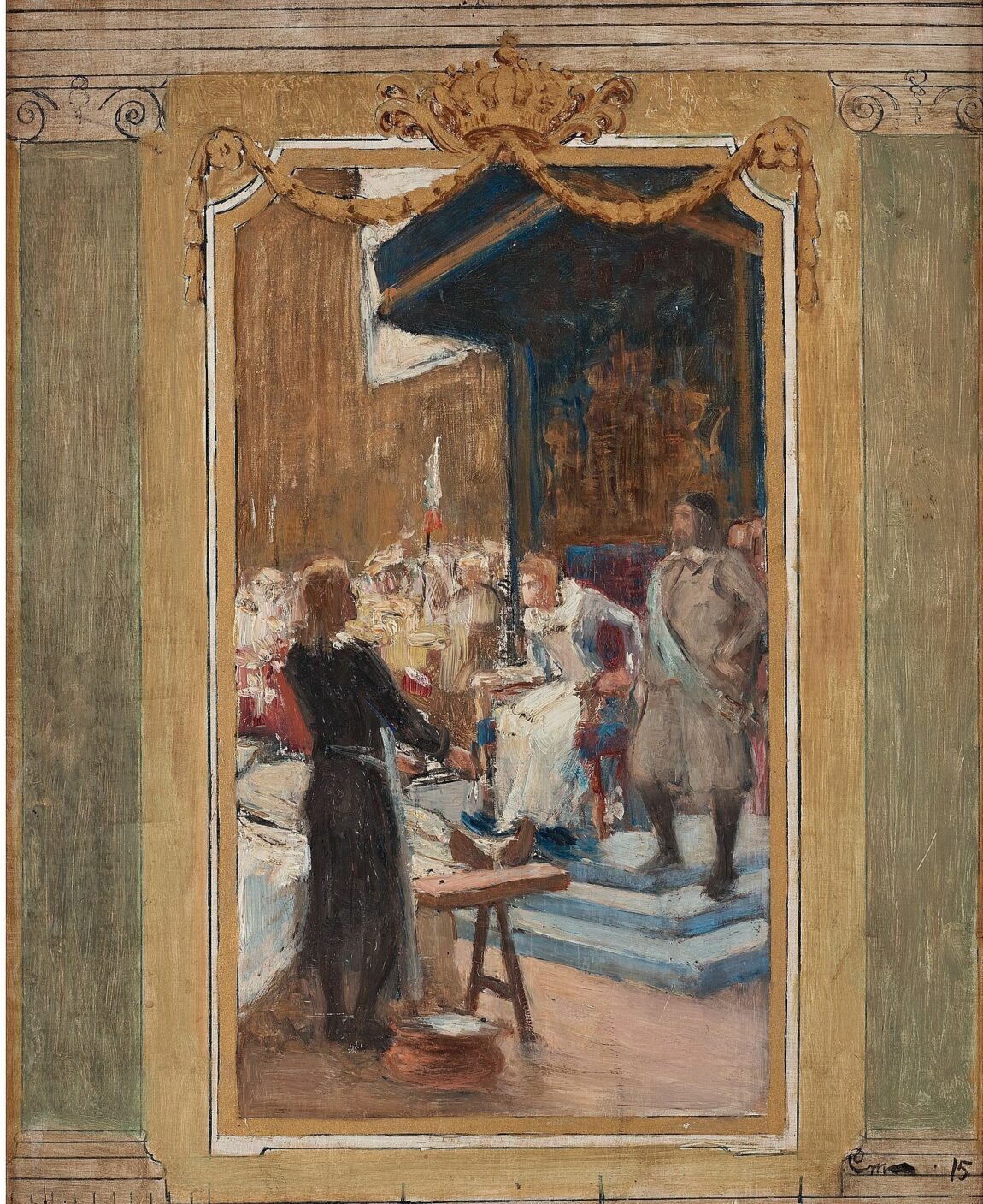 Samma kväll invigs en textil installation som avbildar det konstverk som ursprungligen var tänkt att hänga i övre trapphallen mittemot Tåget över Bält. Skissen av konstnären Gustaf Cederström visar Olof Rudbeck d.ä. förevisande drottning Kristina det nyupptäckta lymfsystemet, vilket också blir en hyllning till drottningen och hennes intresse för vetenskap och konst.